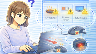 マウストラブルマウスが長時間使用後に効かなくなる原因とは|発熱・電力消耗・OS不調の切り分け マウスが長時間使ったあとに反応しなくなる原因を解説。発熱や電池消耗、OSやドライバーの一時的不調などを切り分け、すぐに試せる復旧方法と根本的な対策をまとめています。 2026.01.06マウストラブル