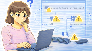 キーボードトラブル外付けキーボードが認識されない原因とは|USB・Bluetooth別の切り分けと対処法 外付けキーボードがパソコンに認識されない原因をUSB接続・Bluetooth接続別に解説。基本チェックから設定・ドライバー確認、故障の見極め方まで分かりやすくまとめています。 2026.01.07キーボードトラブル