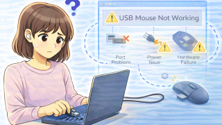 マウストラブルマウスが一時的にフリーズする原因は?突然止まる時の正しい復旧手順と予防策 マウスが突然フリーズして動かなくなる原因を分かりやすく解説。USB接続や無線マウスの省電力設定、OS不具合の見分け方から、今すぐ試せる復旧手順と再発防止策までまとめています。 2026.01.04マウストラブル