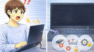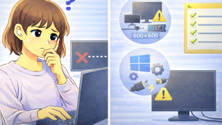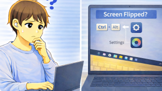 PC画面が突然回転・反転して戻らない原因を解説。ショートカットキー誤操作やディスプレイ設定、自動回転機能の確認と正しい戻し方を初心者向けにまとめています。